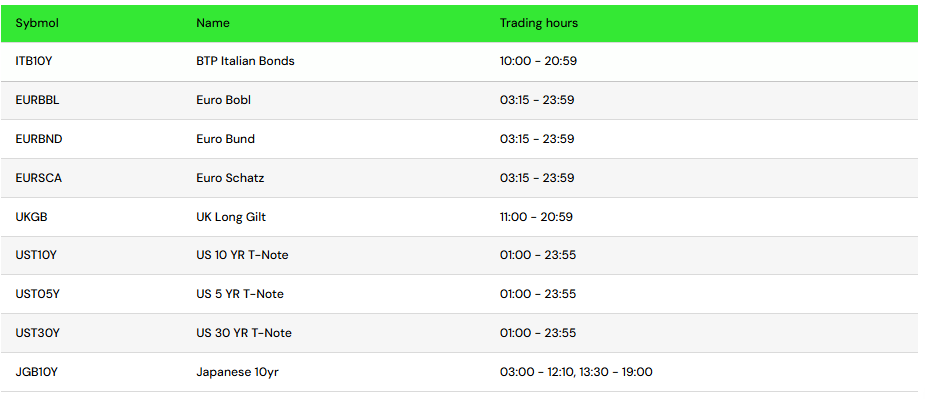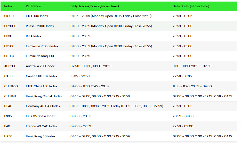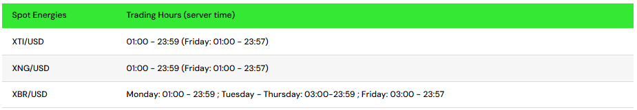 Below is an overview of trading hours for all our instruments. Please note that Ohio Markets server time follows GMT+2, adjusting to GMT+3 during daylight savings.